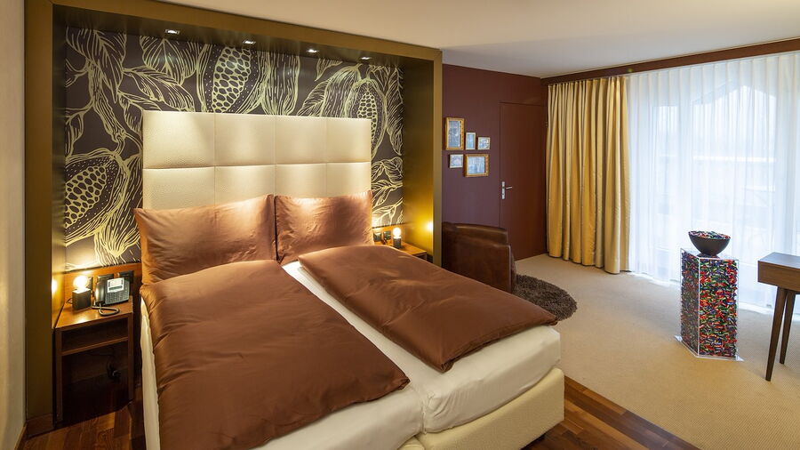 Dass man im Revier Hotel Säntispark gut schläft ist allgemein bekannt. Doch besonders süss träumen lässt es sich in unseren "Schoggi-Zimmer" träumen, welche in Zusammenarbeit mit dem Chocolarium - der Glücksfabrik von Munz und Minor - in Flawil gestaltet wurden. Sie bilden die beiden Markenwelten "Munz" und "Minor" der Schokoladenfabrik Maestrani ab und bieten ein einzigartiges Ambiente ganz im Zeichen der Schokolade. Doch damit nicht genug: pro Buchung in einem der beiden Themenzimmer ist der Eintritt ins Chocolarium inklusive!