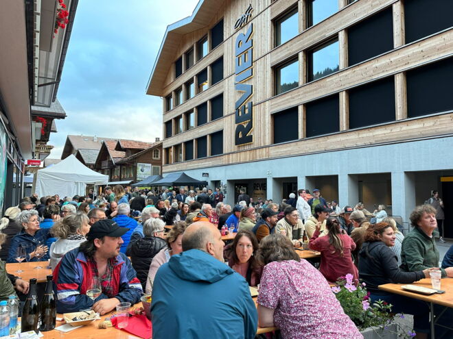 Gäste und Einheimische treffen sich am 24. und 31. Juli sowie am 7. und 14. August beim "Aabesitz" zum gemütlichen Beisammensein entlang der verkehrsfreien Dorfstrasse. Unter den zahlreichen Verpflegungsangeboten darf natürlich auch der Revier Burger nicht fehlen. Wir betreiben einen Foodstand direkt vor der Revier Mountain Lodge in Adelboden.